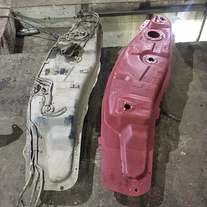 Топливные баки Mitsubishi — это один из лидеров с проблемой коррозии и течи топливных баков. Возьмем к примеру линейку топливных баков Паджеро: владельцы данных автомобилей знают, что на этих баках образуется некий «парник» между баком и защитой, туда забивается вся грязь вместе с гравием и песком, в результате образуются идеальные условия для образования ржавчины. Вся грязь с колеса летит на горловину, в результате чего идет гниение и самой топливной горловины, все это так же попадает в бак и начинается дополнительная реакция уже внутри баков pajero. Везде где происходит частый контакт стали с водой создается риск коррозии металла. Низкое качество металла баков Mitsubishi сделало свое дело и коррозия разрушает баки как изнутри, так и снаружи.